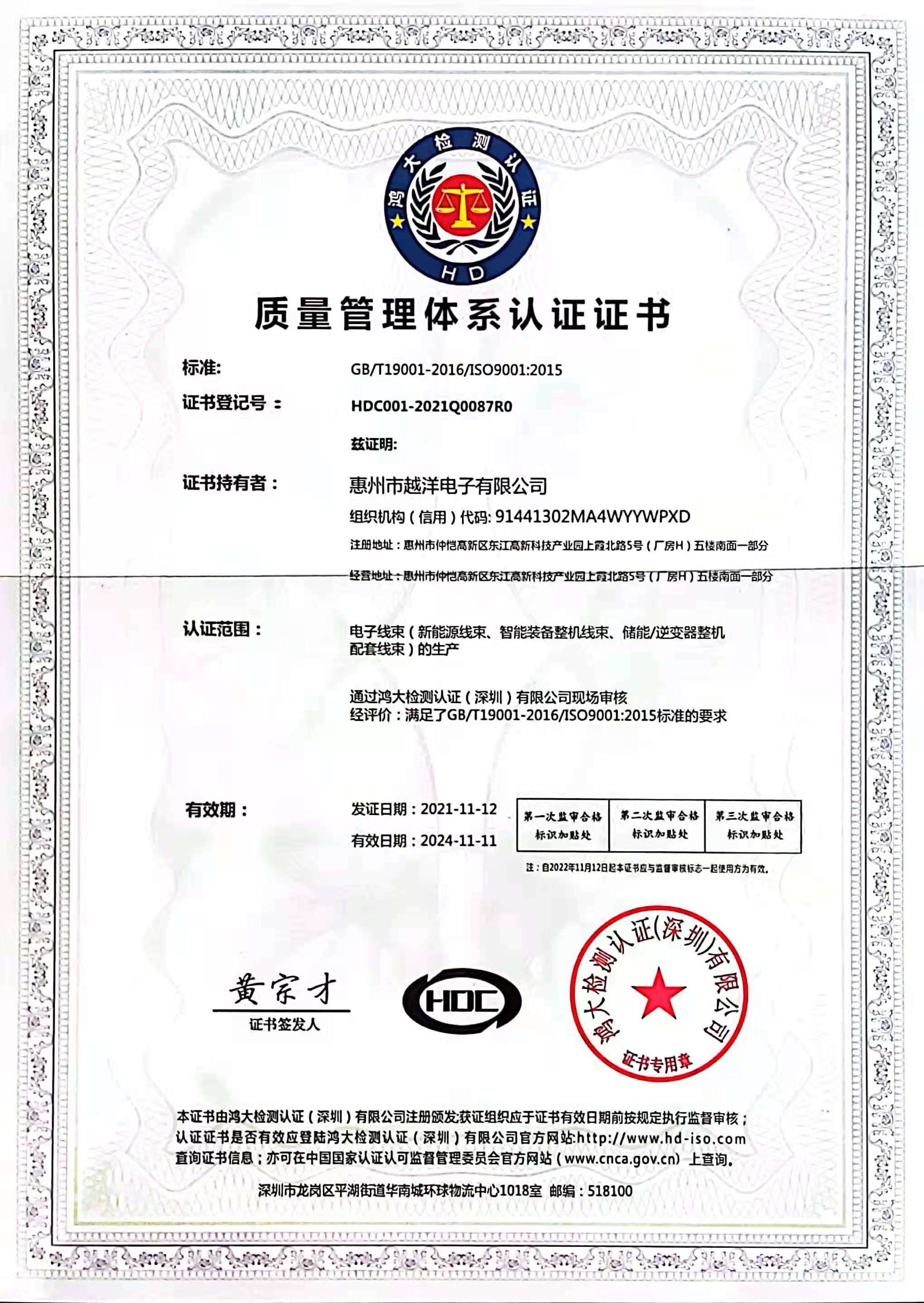 越洋電子有限公司創立于2014年,以生產、開發各類插頭、線束為主,是一家自然人獨資的有限責任公司。